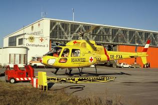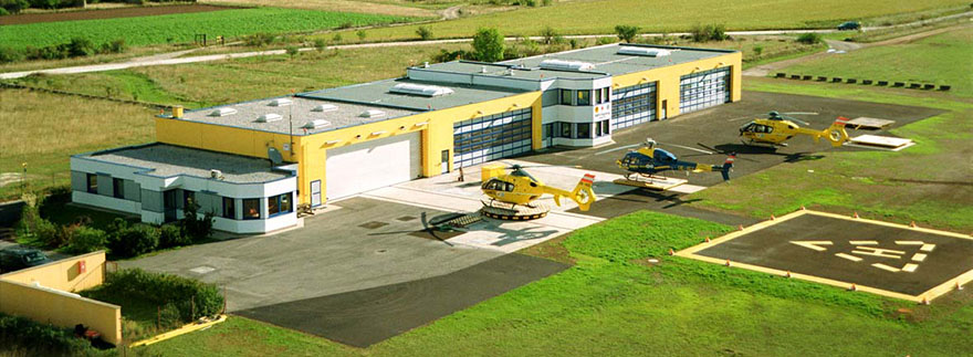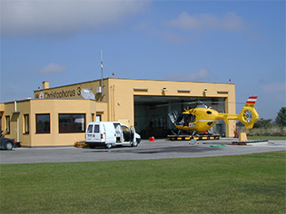 und etwa 15-20% Verlegungsflüge („Sekundärtransporte“ zwischen Krankenhäusern unterschiedlicher Versorgungsstufen). In 5 – 10% der Fälle kam es zu Fehlberufungen – Einsätze, bei denen keine notärztliche Hilfe erforderlich war, obwohl die Rettungsleitstelle aufgrund der Meldung von unmittelbarer Lebensbedrohung ausgehen musste. Der Stützpunkt, welcher in einem Trakt des großen Hangars am Flugplatz Ost untergebracht war, entsprach im Laufe der Jahre den Anforderungen nicht mehr. Darüber hinaus wurde das Platzangebot für den Hubschrauber im Hangar - mitten unter einer zunehmenden Zahl an Sportflugzeugen - immer geringer. |